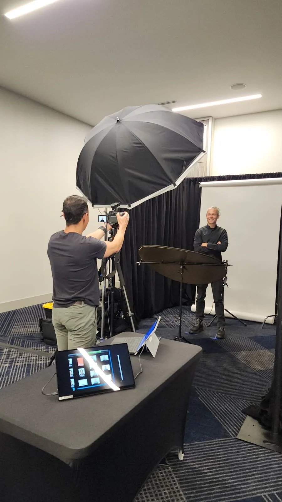 Wednesday morning began bright and early with two instant headshot bays, each equipped with professional lighting, calibrated cameras, and tethered instant sharing tablets.