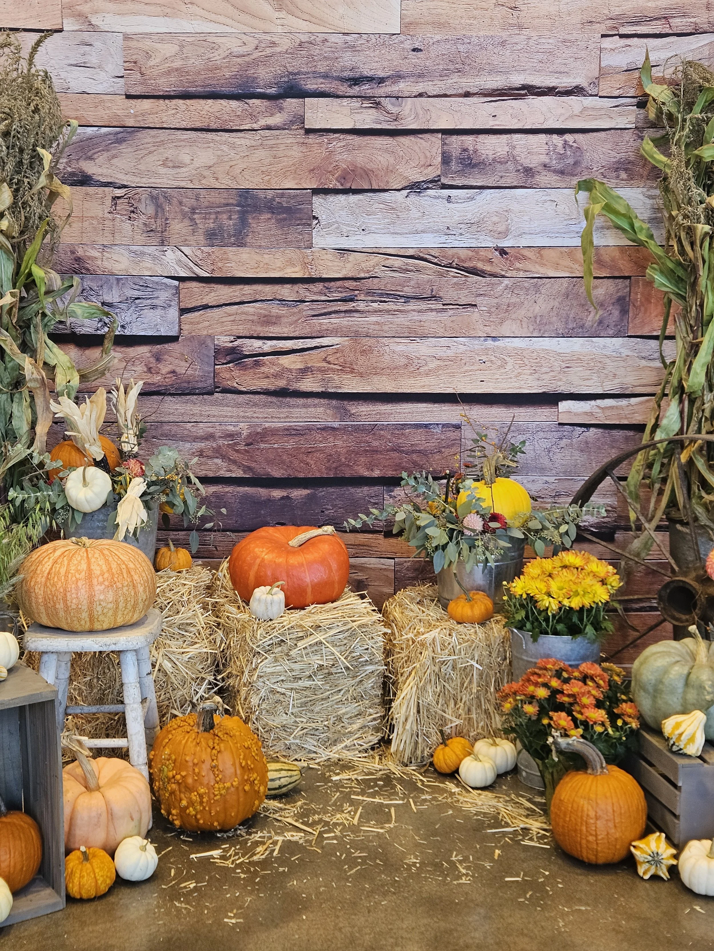 The backdrop was filled with pumpkins, hay bales, cornstalks, and seasonal florals, accented by plaid textures and warm lighting — perfect for cozy, candid moments with colleagues.