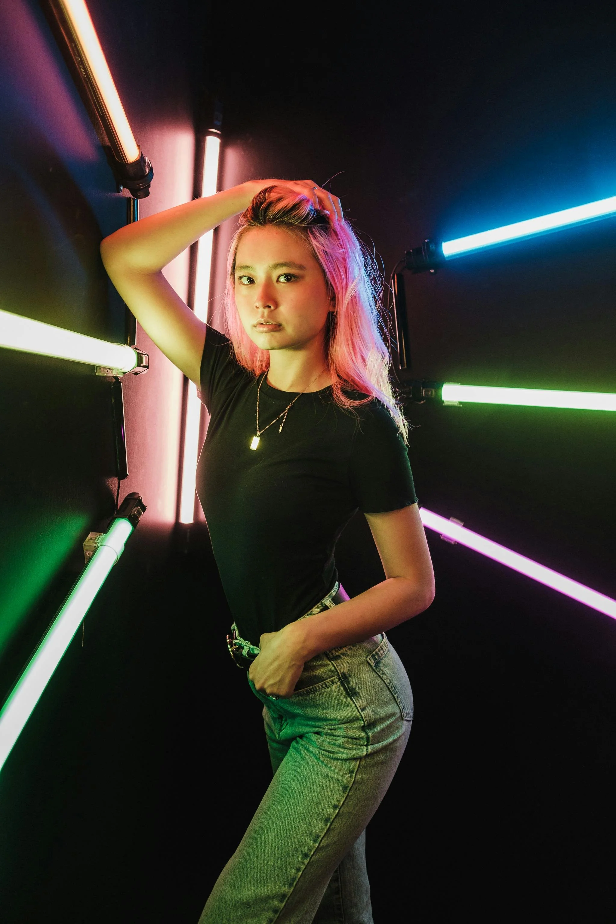 This setup produces dramatic, cinematic results that feel like a magazine shoot. It’s eye-catching, unique, and perfect for brands that want to stand out with a luxury or cutting-edge feel.