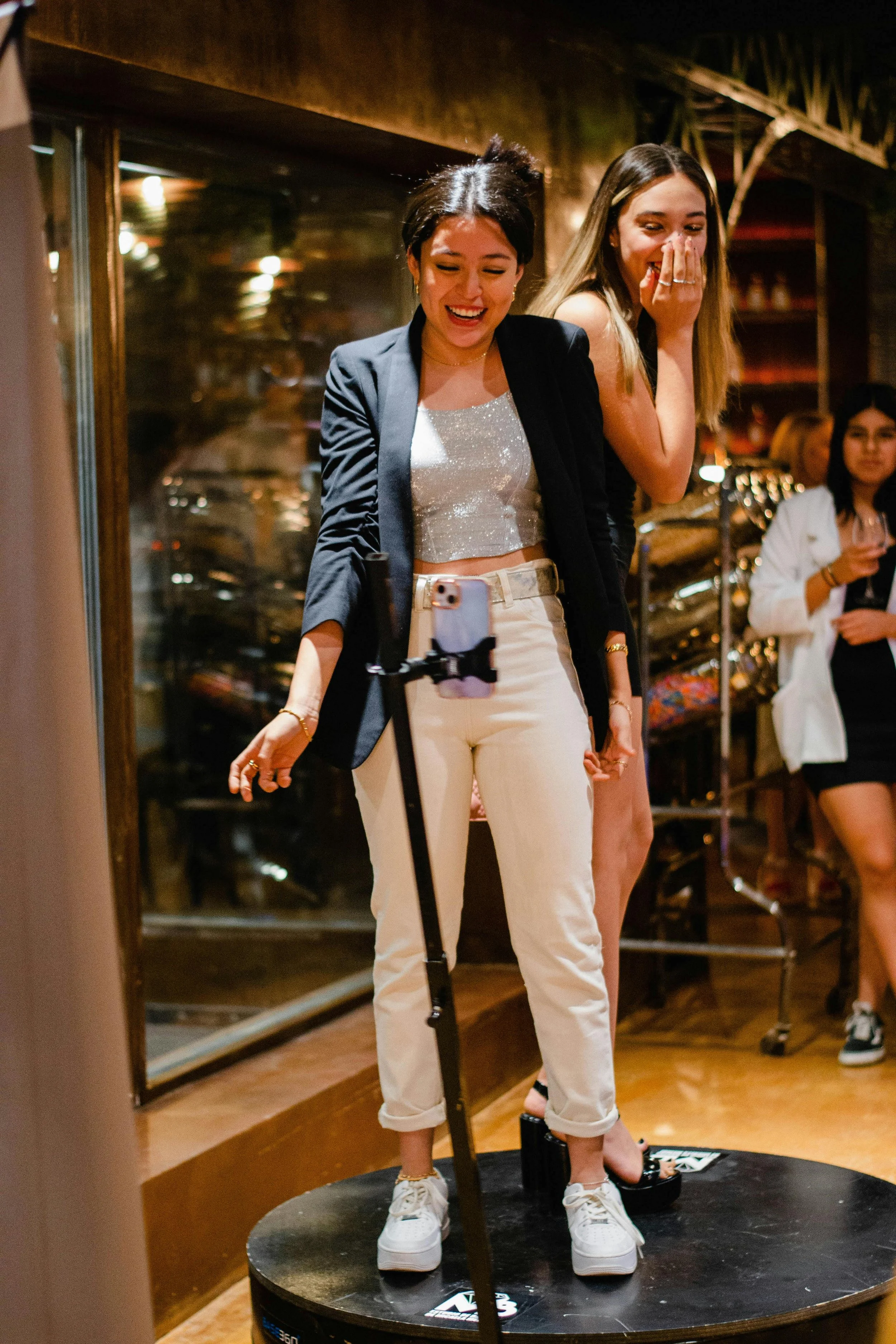 Guests can jump, pose, or celebrate while the camera spins around them, creating high-energy, social media-ready clips. Add branded overlays, music, and effects to create a fully immersive experience that attendees will want to share instantly.